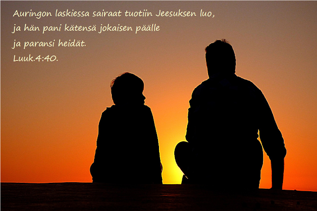 Älä päästä mielestäsi minun sanojani, pidä ne visusti sydämessäsi, sillä ne ovat löytäjälleen elämä, lääke koko hänen ruumiillensa. Sananl.4:21-22.